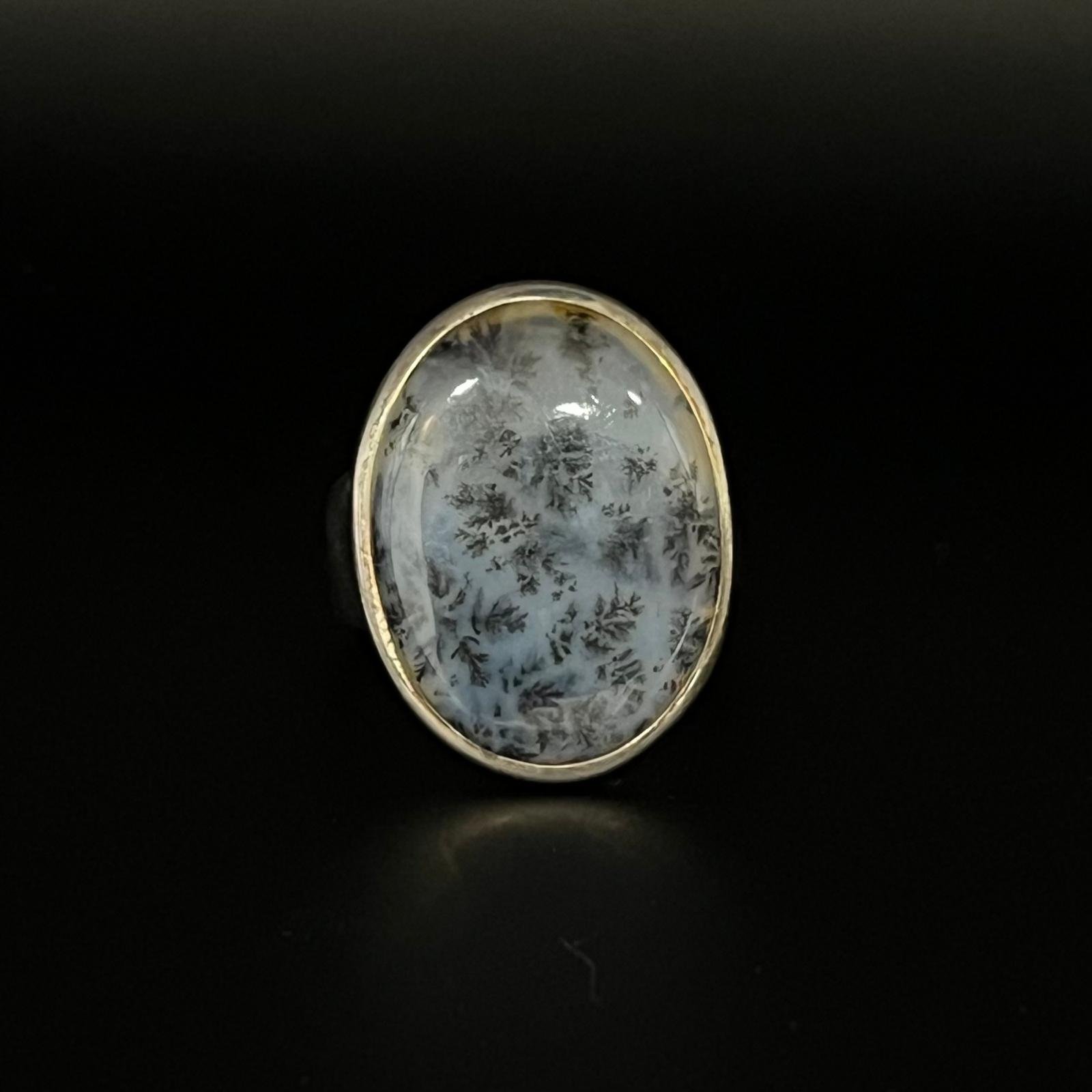 Bague en Agate Dendritique serti clos en Argent 925/1000