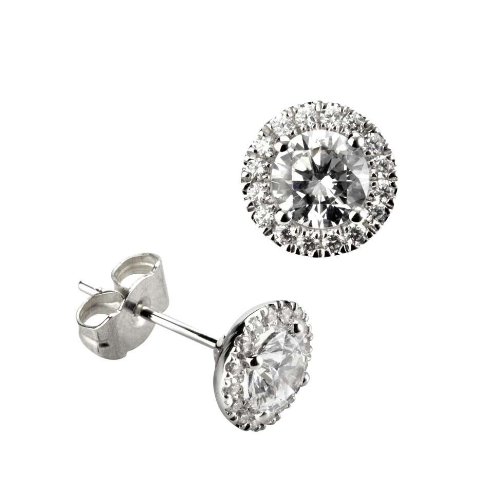 Boucles d’oreilles Classique avec une paire de brillants serti 4 griffes entouré de brillants en Argent 925/1000 plaqué 18k
